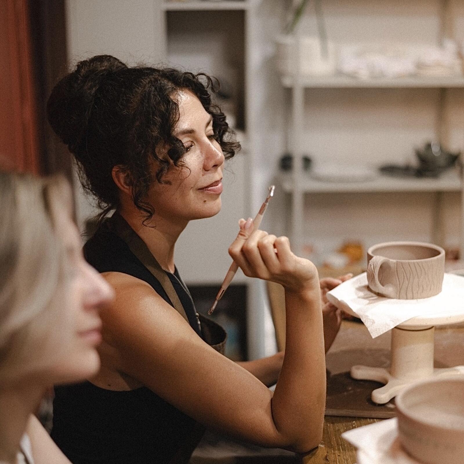 Создаете все вместе кружки, тарелки или другие формы на гончарном круге или лепкой. Мастер уделяет внимание каждому.